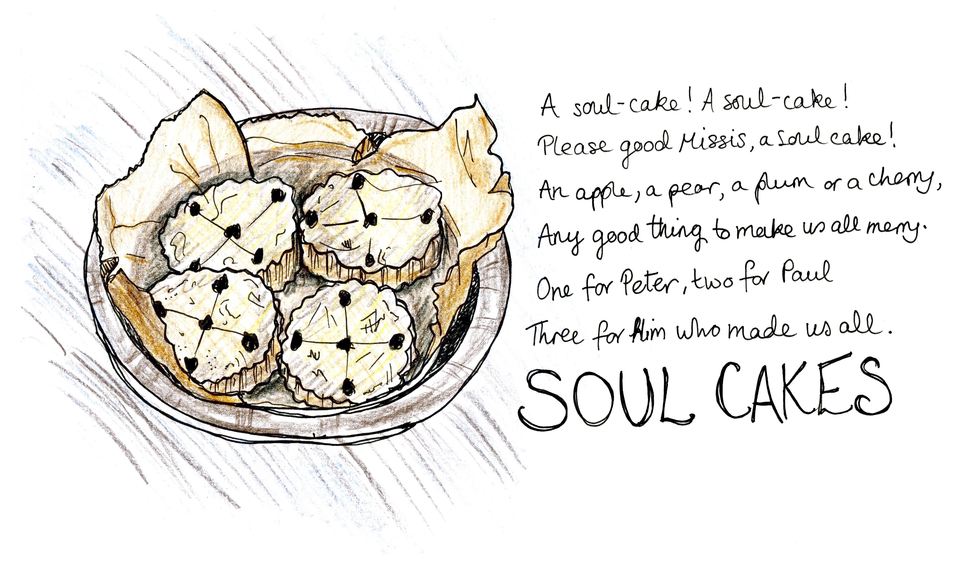 Nesta noite, por exemplo, em Inglaterra e na Irlanda, na idade média, havia também o costume de pedir "Soul Cake"- Bolo de Alma (uma espécie de bolacha de manteiga) para partilhar com as almas dos mortos que, na véspera do dia de Todos os Santos, "erravam pelo mundo”. Nessa noite, crianças e adultos batiam às portas para pedir o “Soul cake” em troca de orações pelos mortos dessa casa. Acreditava-se que, por cada bolo oferecido, Deus libertava uma alma do purgatório. Esta tradição manteve-se até ao século passado. Em 2009, Sting recuperou-a incluindo a canção tradicional "Soul Cake"no seu álbum "if on a Winter's Night"
