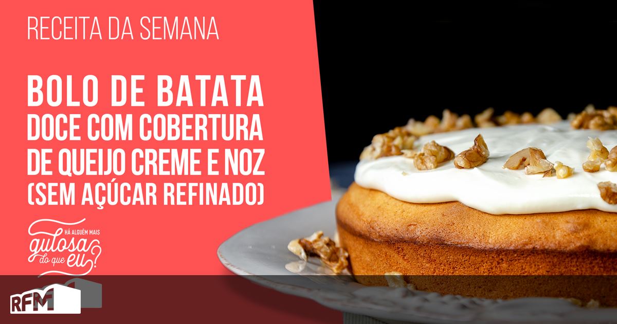 HÁ ALGUÉM MAIS GULOSA DO QUE EU? - BOLO DE BATATA DOCE COM COBERTURA DE QUEIJO CREME E NOZ (SEM AÇÚCAR REFINADO)