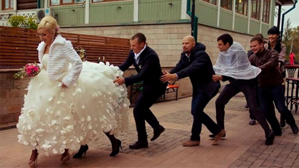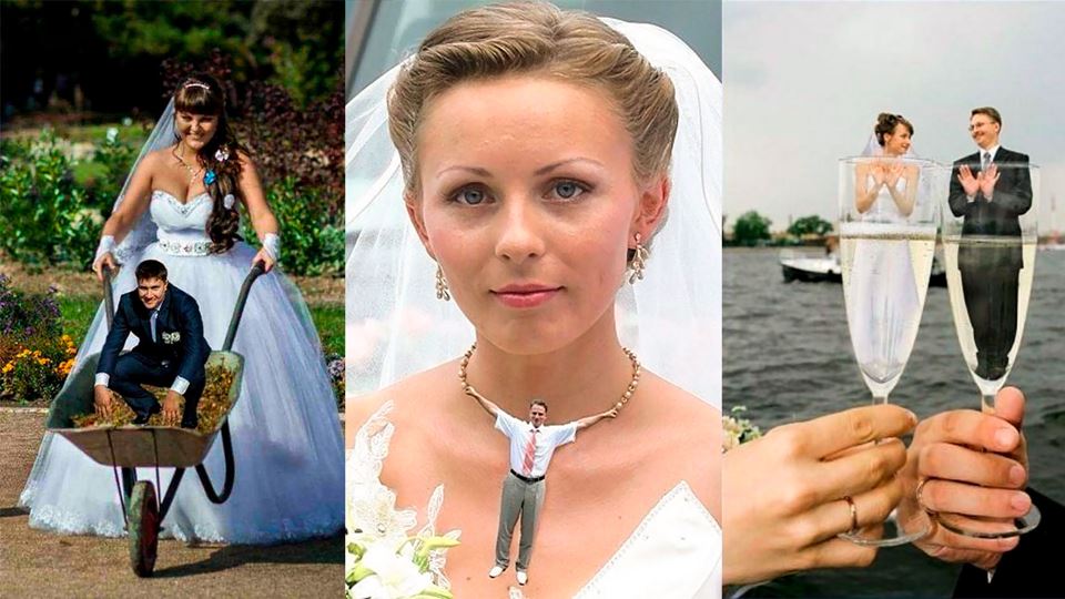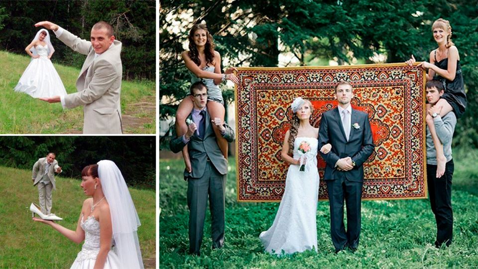Enquanto uns apenas escolhem as fotografias em que os noivos e convidados estão bonitos e bem arranjados, na Rússia, os álbuns das fotografias primam pela diferença.