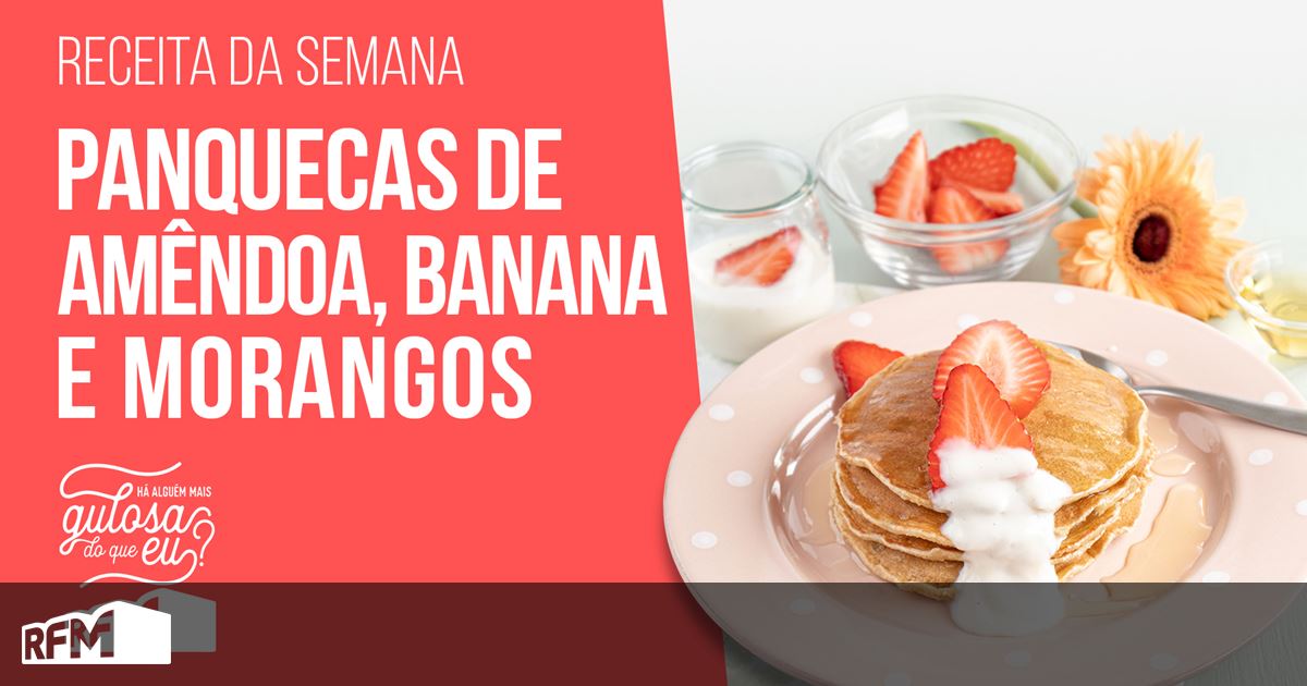 HÁ ALGUÉM MAIS GULOSA DO QUE EU? - PANQUECAS DE AMÊNDOA, BANANA E MORANGOS (SEM AÇÚCAR REFINADO, SEM GLÚTEN)
